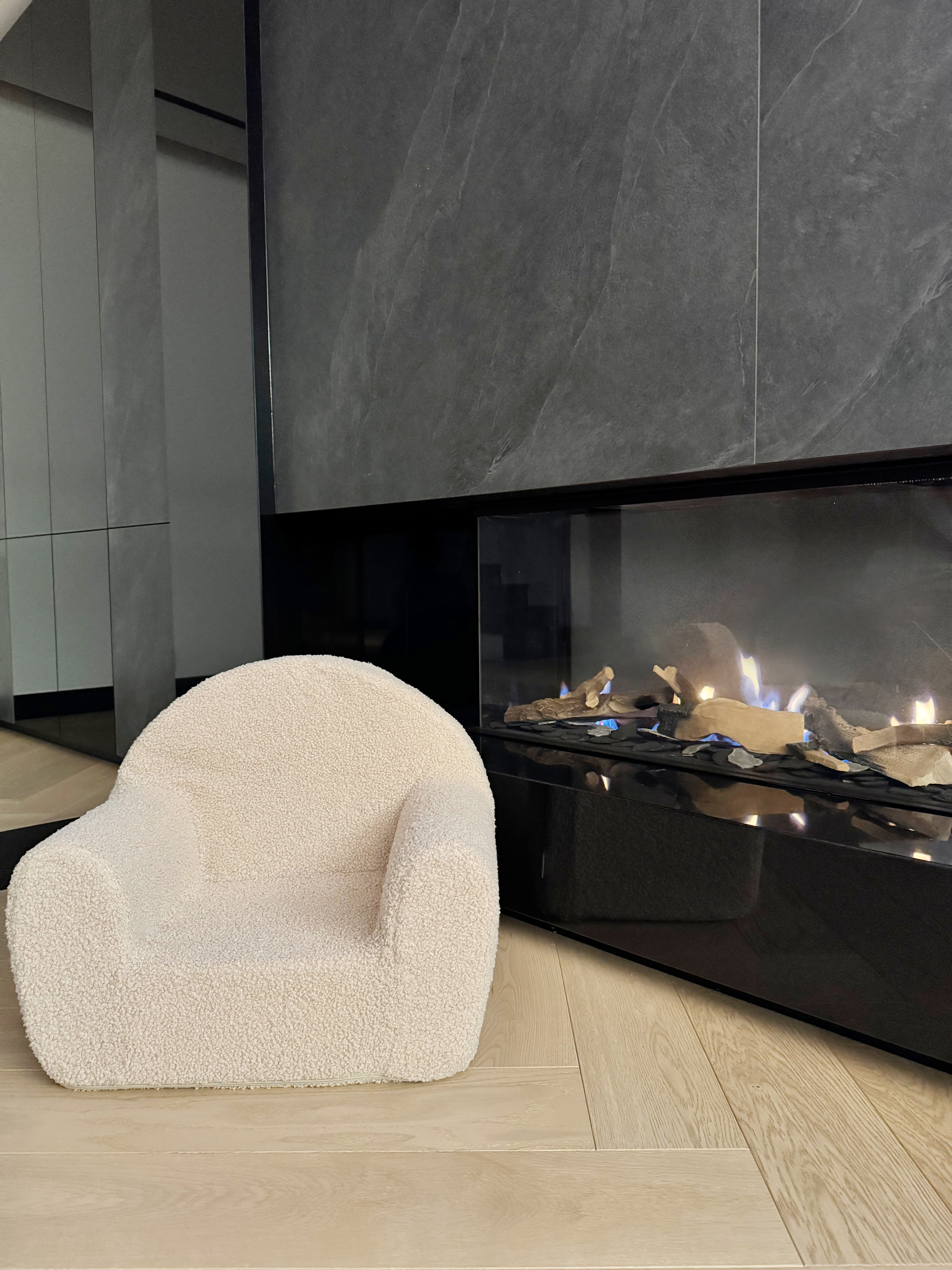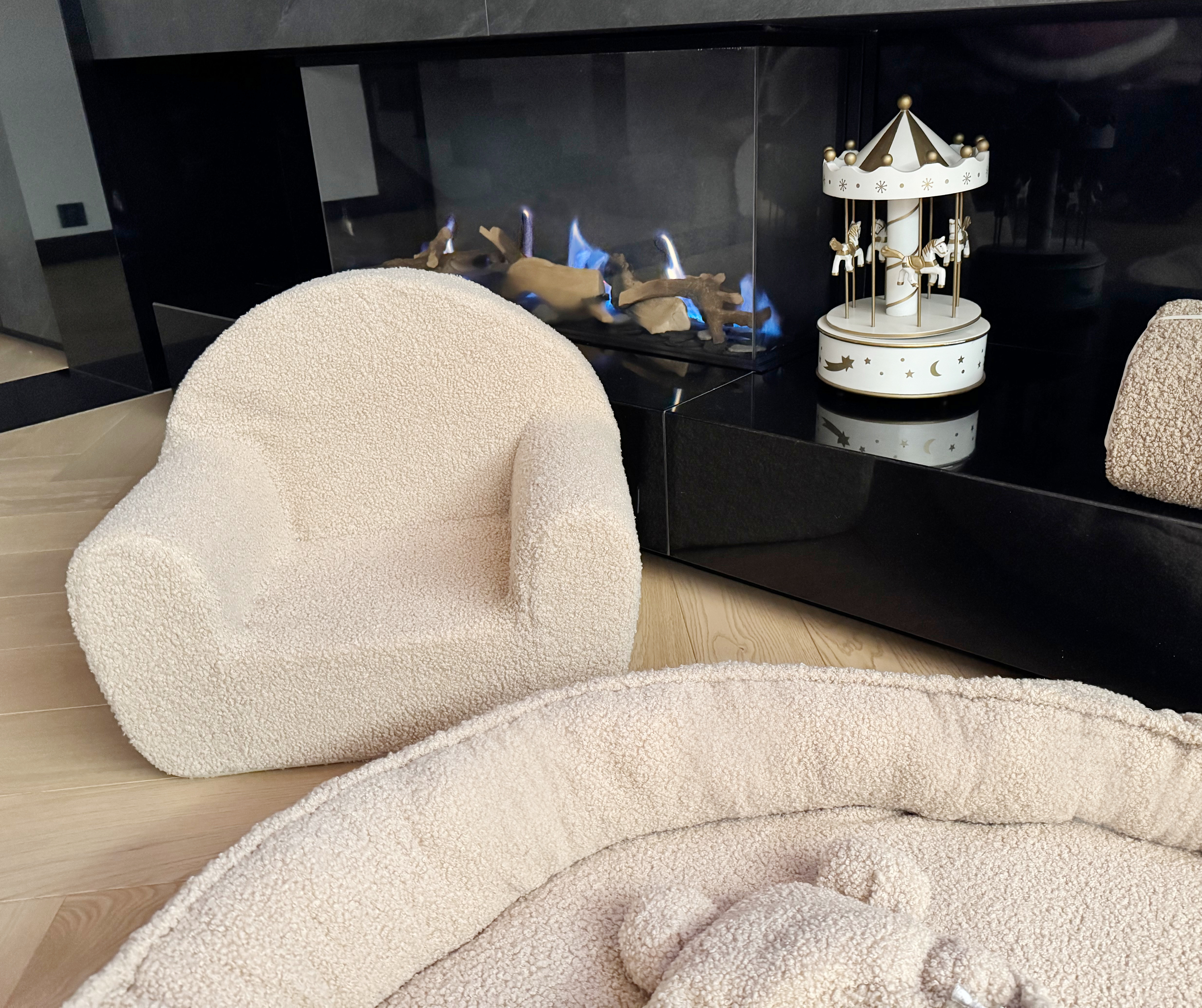 Przyjemny w dotyku materiał sprawia, że fotelik jest wyjątkowo miękki i komfortowy, a lekka konstrukcja pozwala dziecku bez problemu przenosić go w różne miejsca pokoju.