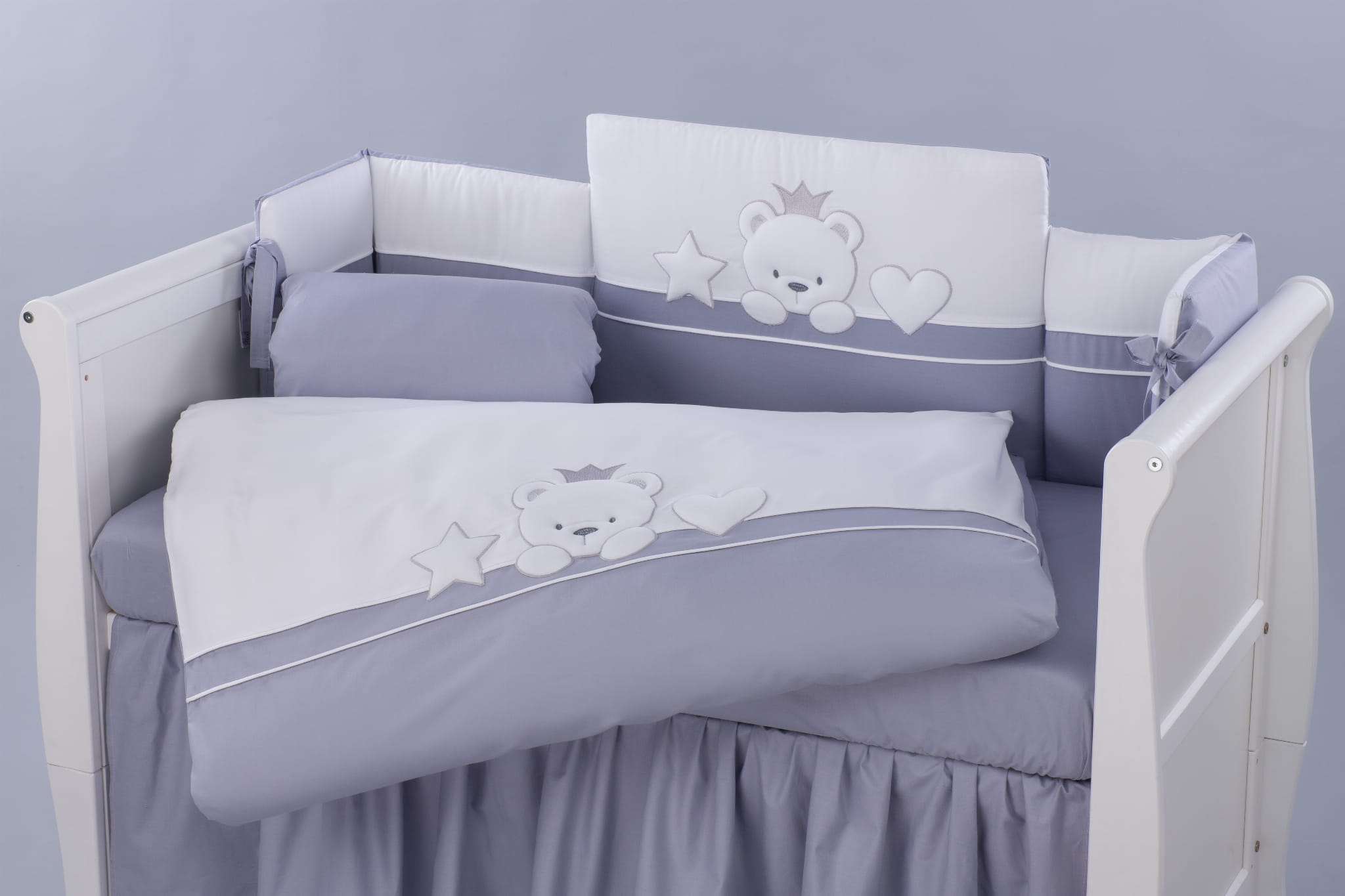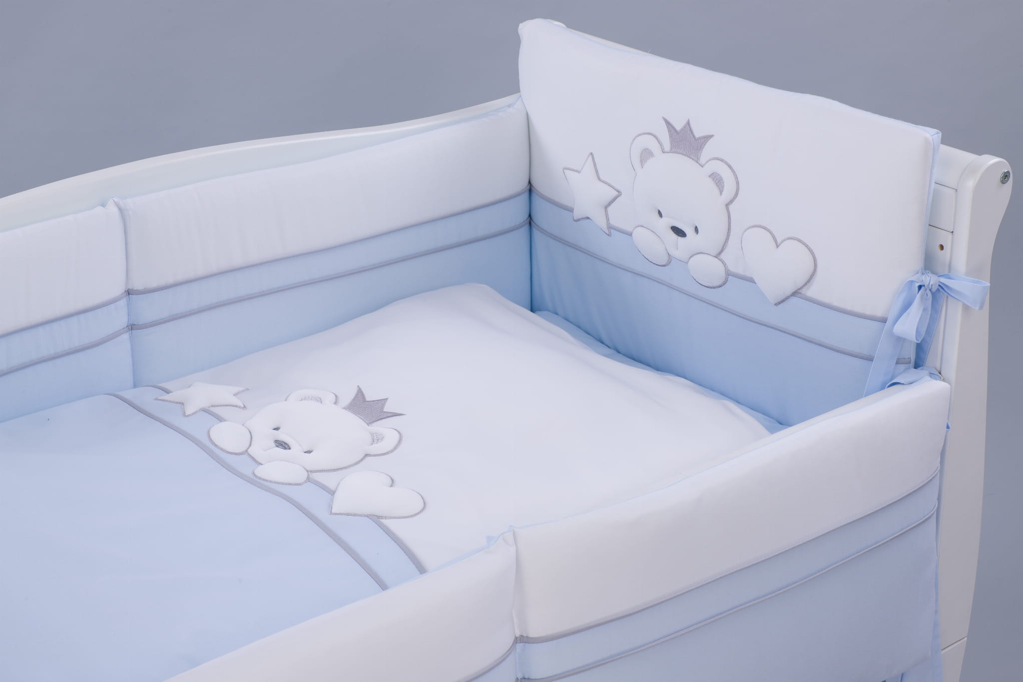Ochraniacz z wypełnieniem dookoła łóżeczka (120x60 ) ( 360dł) Tuttolina Bear Crown